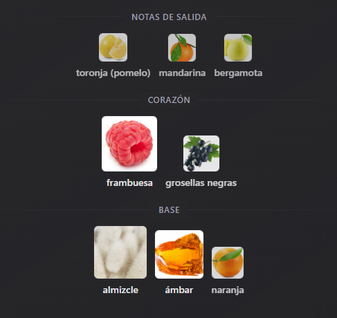 Notas base: Almizcle, ámbar y naranja.
