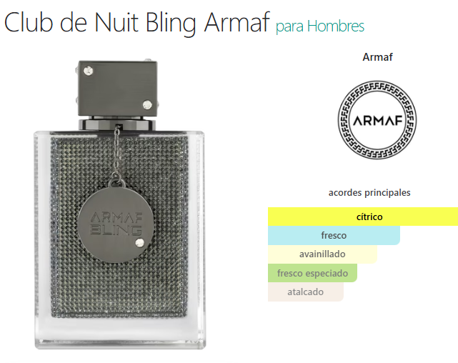 Club de Nuit Bling de Armaf es una fragancia de la familia olfativa Amaderada Aromática para Hombres y Mujeres. Esta fragrancia es nueva. Club de Nuit Bling se lanzó en 2025.