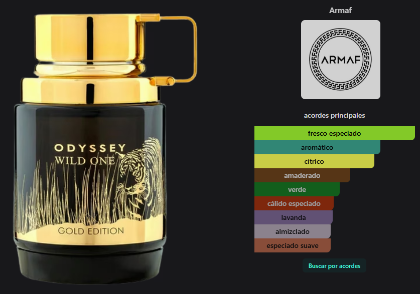 Odyssey Wild One Gold Edition de Armaf es una fragancia de la familia olfativa Amaderada Especiada para Hombres.