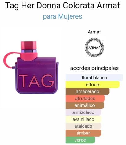 TAG Donna Colorata es perfecta para quienes buscan una fragancia fresca, afrutada y floral que ilumine su día a día. Ideal para combinar con ropa informal, pero con un toque de elegancia que transforma cualquier momento cotidiano en algo especial.