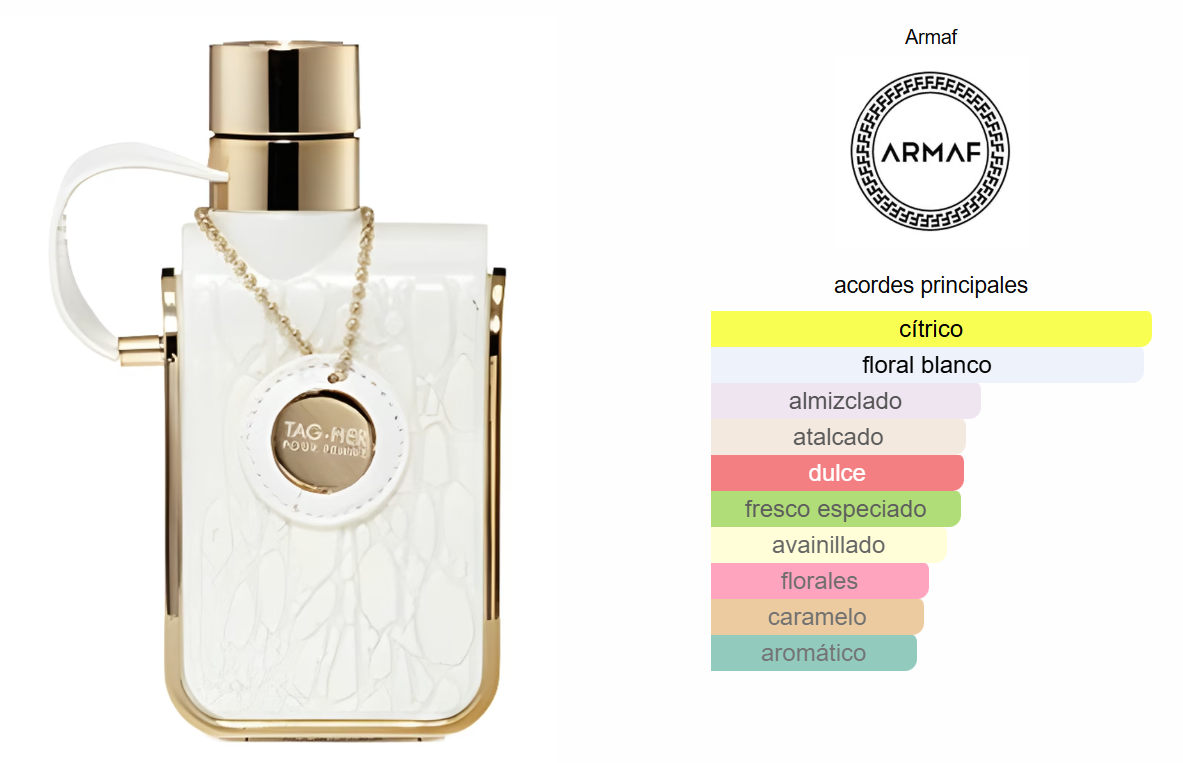 Tag-Her de Armaf es una fragancia de la familia olfativa Oriental Floral para Mujeres.