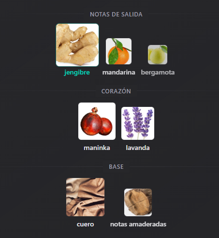 Notas de Salida: Jengibre, mandarina y bergamota