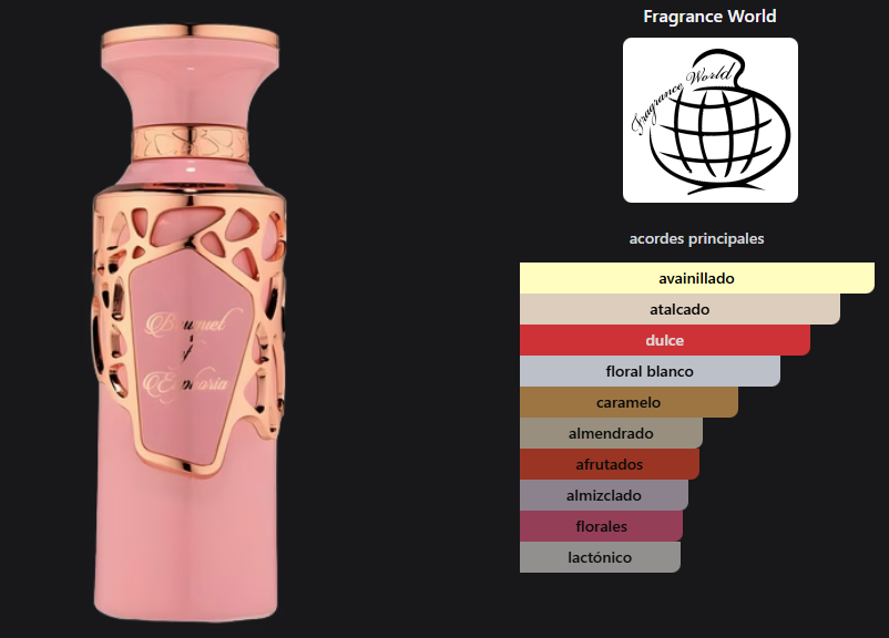 Bouquet of Euphoria de Fragrance World es una fragancia femenina de la familia floral gourmand.