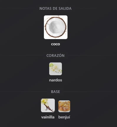 Notas de Fondo: vainilla y benjuí.