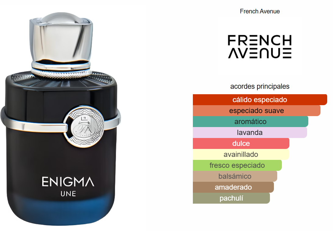 Enigma Une de French Avenue es una fragancia de la familia olfativa Amaderada Especiada para Hombres. Enigma Une se lanzó en 2023.