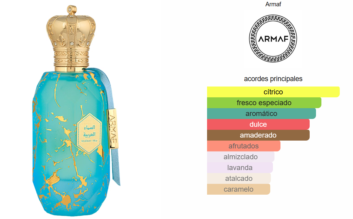 Descubre Arabian Sky de Armaf, una fragancia cautivadora que pertenece a la familia olfativa Amaderada Aromática, diseñada tanto para hombres como para mujeres. Lanzada en 2024, esta esencia fresca y vibrante es perfecta para quienes buscan un aroma que combine elegancia y sofisticación.