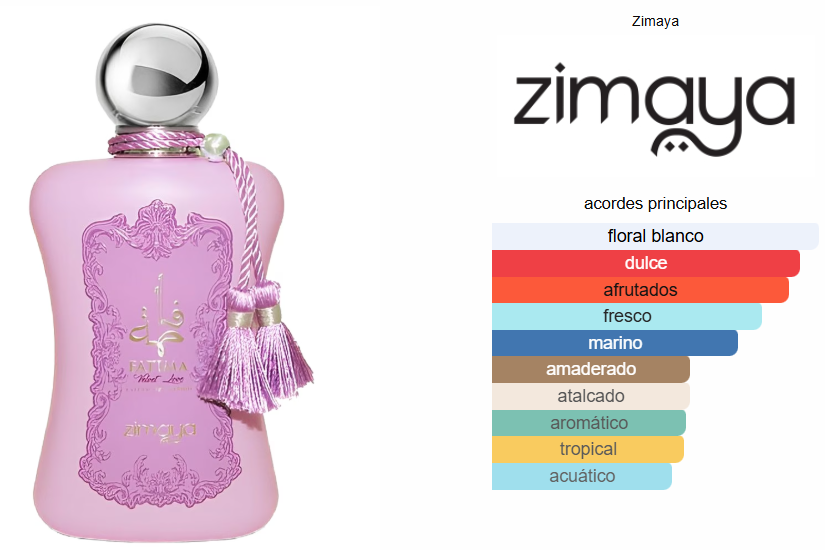Fatima Velvet Love de la casa Zimaya es una fragancia de lujo que captura la esencia de la sofisticación y el misterio. Diseñada para aquellas que buscan una experiencia olfativa inolvidable, esta esencia se despliega en una serie de notas cuidadosamente seleccionadas que evocan elegancia y sensualidad.