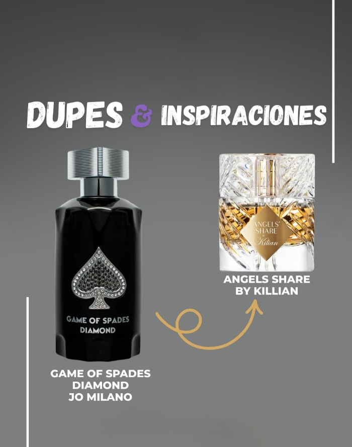 Jo Milano Game of Spades Diamond es una fragancia unisex inspirada en Angels' Share de Kilian. Su composición ambarina con toques de vainilla y especias combina elegancia y calidez, envolviendo los sentidos en un aroma exquisito y sofisticado.