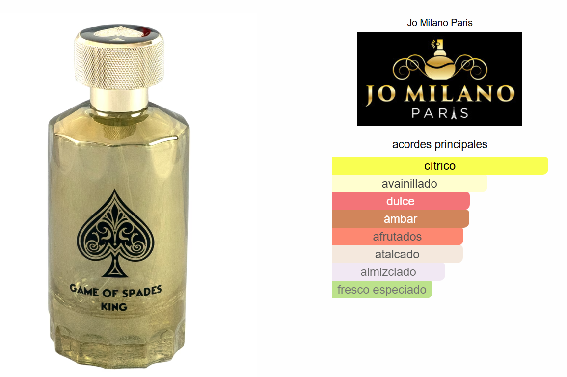 Game of Spades King de Jo Milano Paris es una fragancia de la familia olfativa para Hombres y Mujeres. Game of Spades King se lanzó en 2021.