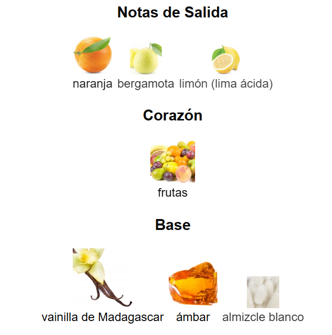 Notas de salida: naranja, bergamota y limón (lima ácida)