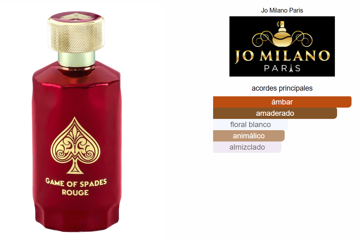 Game of Spades Rouge de Jo Milano Paris es una fragancia de la familia olfativa para Hombres y Mujeres. Game of Spades Rouge se lanzó en 2021
