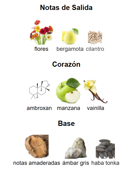 Notas de corazón: ambroxan, manzana y vainilla