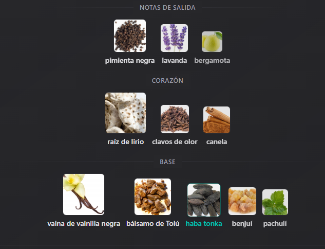 Notas de Salida : Pimienta negra, lavanda, bergamota.