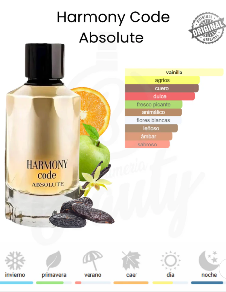 Harmony Code Absolute de Fragrance World cuenta con un aroma avainillado y cítrico que combina la dulzura cremosa de la vainilla con la frescura chispeante de la naranja y el toque elegante de la flor de azahar. Su carácter envolvente y seductor lo hace perfecto para noches especiales, días fríos o climas frescos.