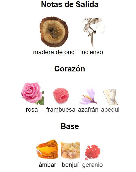 Nota de Corazón: rosa, frambuesa, azafrán y abedul