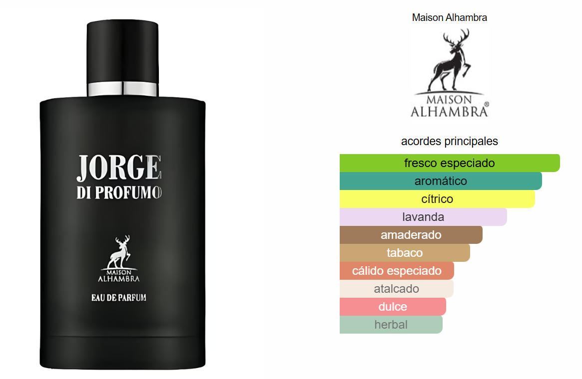 Jorge di Profumo de Maison Alhambra es una fragancia de la familia olfativa Aromática para Hombres. Jorge di Profumo se lanzó en 2022.