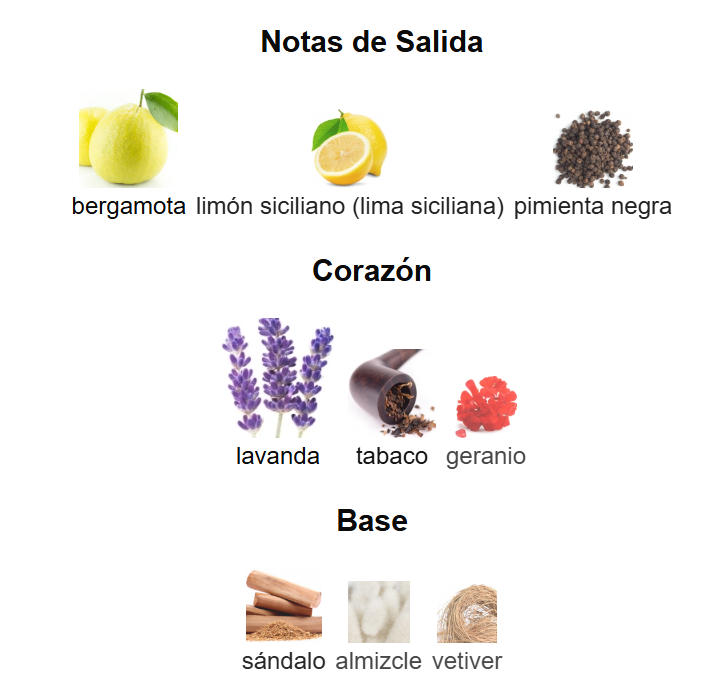Notas de salida: bergamota, limón siciliano (lima siciliana) y pimienta negra