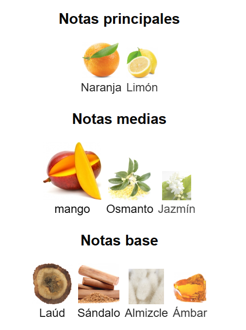 Notas de Fondo: oud, sándalo, almizcle y ámbar.