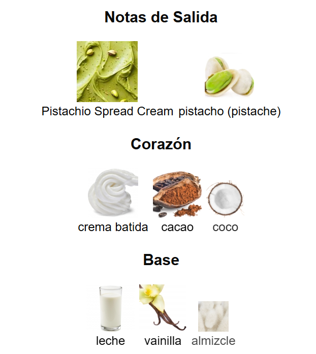 Notas de Salida: Pistachio Spread Cream y pistacho (pistache)
