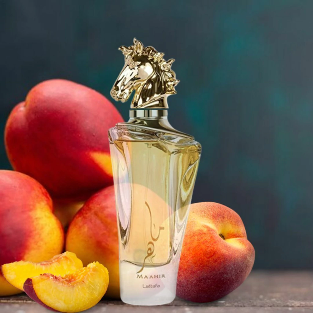Maahir de Lattafa Perfumes es una fragancia floral ambarada para mujer y hombre. Maahir se lanzó en 2020. Sus notas de salida son frutos rojos, melocotón y bergamota; sus notas de corazón son jazmín, peonía y lirio rojo; y sus notas de fondo son sándalo, flor de vainilla y almizcle.