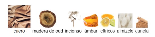 Notas de Fondo: almizcle , gamuza, musgo de roble y oud