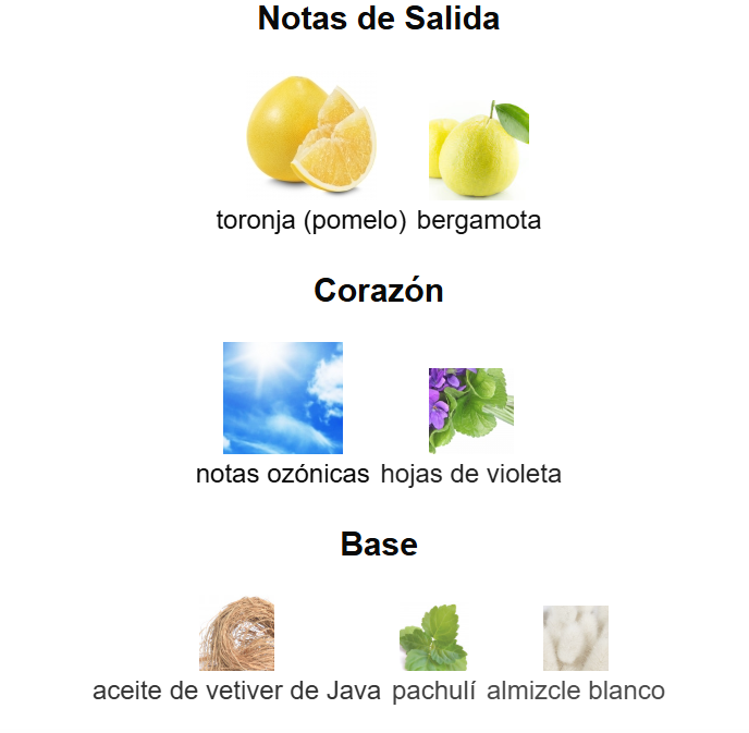 Notas de fondo: pachulí, aceite de vetiver de Java y almizcle blanco