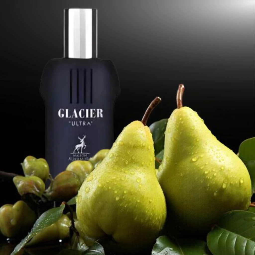 Glacier Ultra se abre con una explosión efervescente de notas altas que incluyen pera, lavanda, menta, bergamota y limón. Este brebaje refrescante ofrece un aroma único y estimulante, la manera perfecta de comenzar el día o mejorar la noche.
