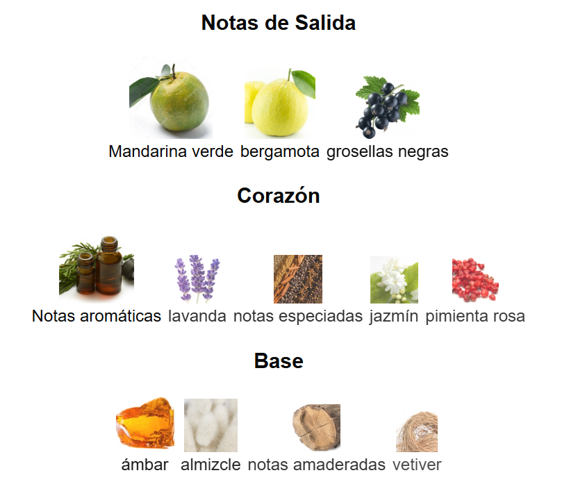 Nota de Corazón: aromáticas, lavanda, notas especiadas, jazmín y pimienta rosa