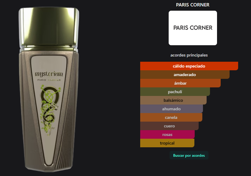 Mysterium de PARIS CORNER es una fragancia de la familia olfativa Oriental Amaderada para Hombres. Esta fragrancia es nueva. Mysterium se lanzó en 2025.