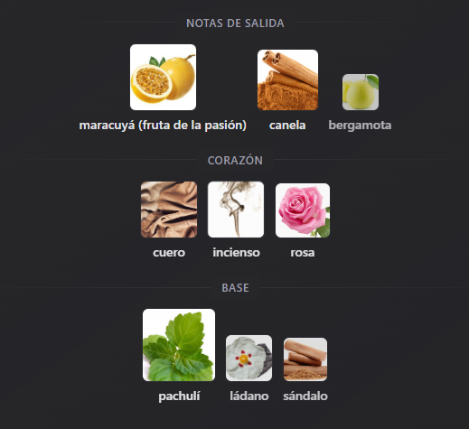 Notas de Salida: MARACUYÁ, BERGAMOTA, CANELA