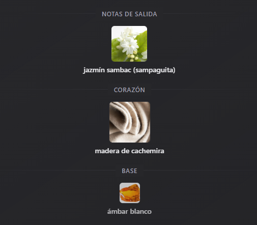 ¿Para quién es? Para quienes aman los florales blancos con un fondo ambarado elegante y una vibra magnética. Ideal para Día y noche; especialmente en clima templado o fresco, y en salidas donde querés dejar huella. Sofisticado, femenino y envolvente, con un toque misterioso.