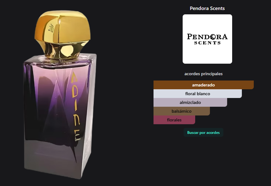 ¿Cómo es Pendora Adine? Es un floral amaderado-ambarado, luminoso y magnético: arranca con jazmín sambac intenso, se vuelve cremoso y envolvente con madera de cachemira, y termina con un ámbar blanco suave que deja una estela elegante y sensual.