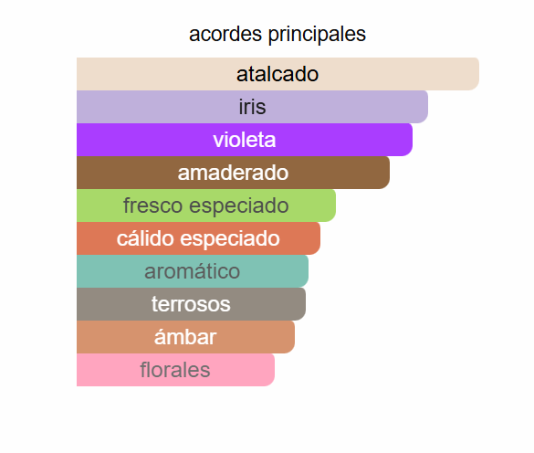 Notas de Corazón: Iris, Violeta, Geranio, Yerba Mate