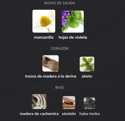 Notas de Salida: Manzanilla y Hojas de Violeta